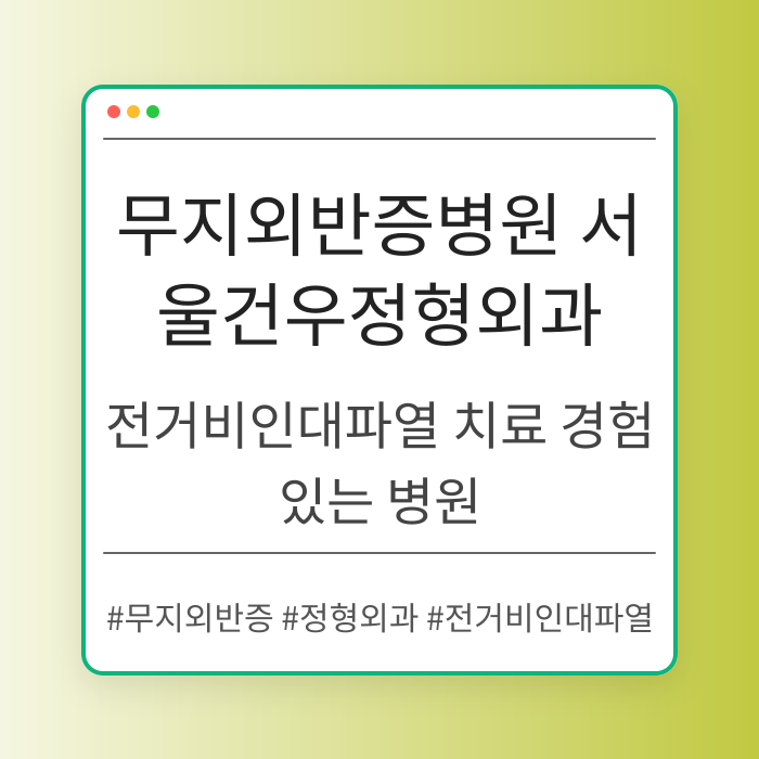 전체 내용 보기 ▼ 펼치기 무지외반증 치료를 전문으로 하는 서울건우정형외과의원에서 전거비인대파열 경험에 대한 정보를 제공합니다. 병원의 위치와 환자 안내사항도 포함되어