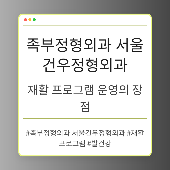 족부정형외과 서울건우정형외과에서 재활 프로그램을 운영하는 장점은 개인 맞춤형 치료와 빠른 회복을 통해 환자들의 발 건강을 개선하는 데 큰 도움이 됩니다.